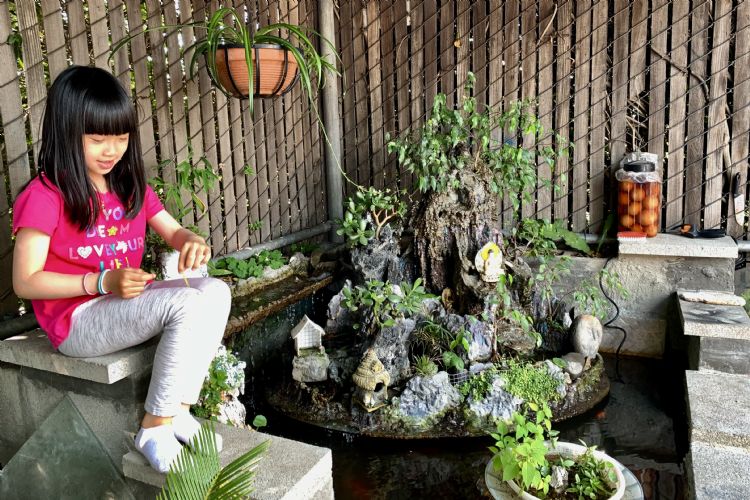Cháu gái con ai mà y chang vậy ta. Xem cây kiểng lấy hủ chanh muối ra uống cho mát.